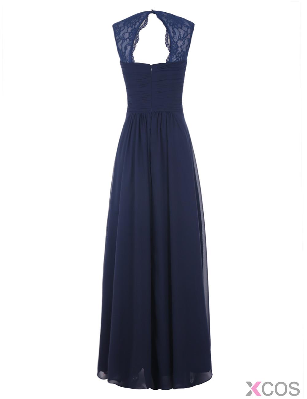 • Simple A-line Sweetheart Sleeveless Chiffon Ruffles Long Navy Blue/Pink Prom Dress