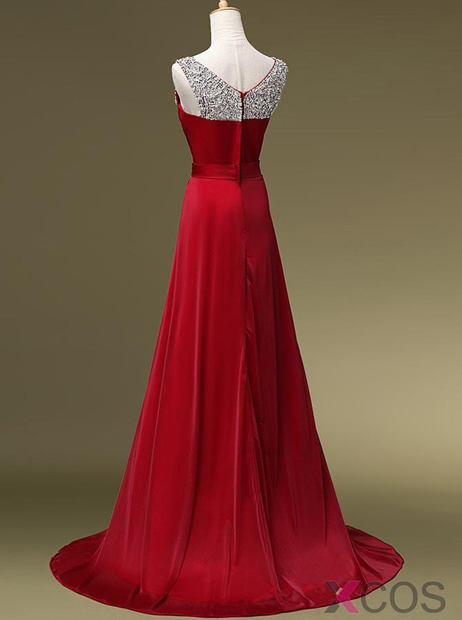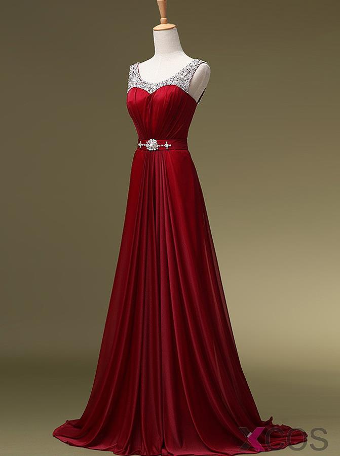 • Simple Dress 2015 Hot-selling A-line Sequined Burgundy Long Chiffon Prom Dresses/Party Dresses CHPD-7005