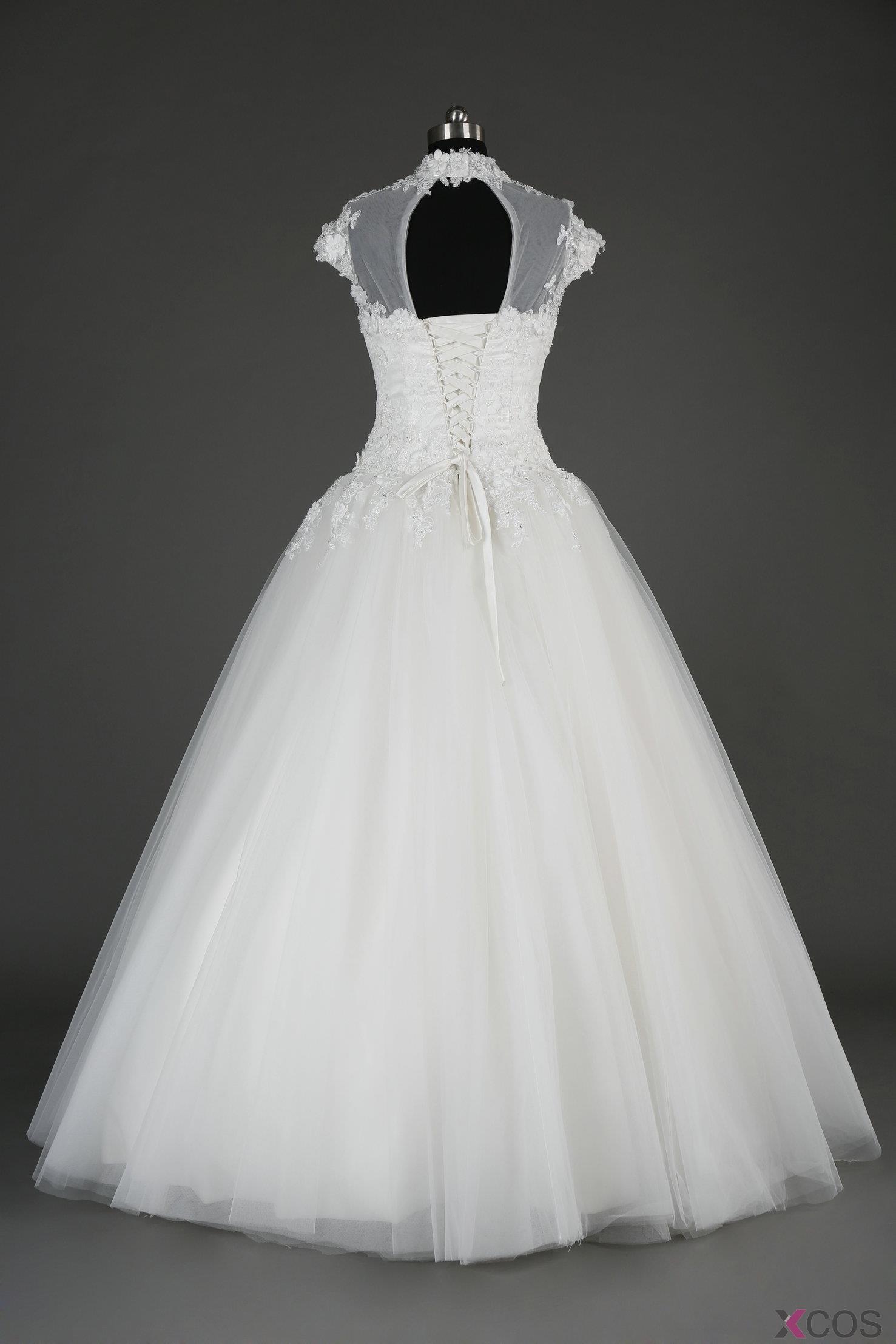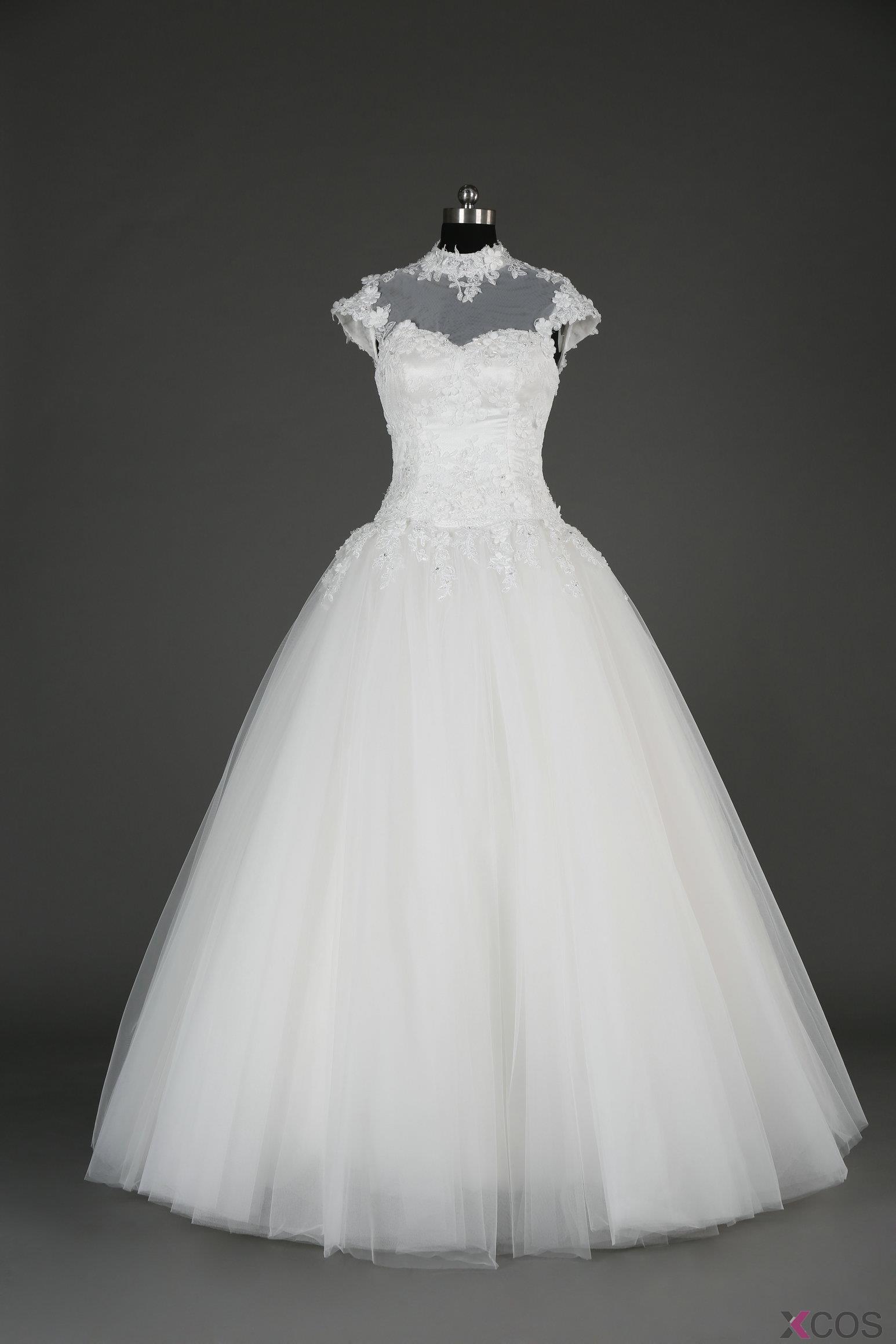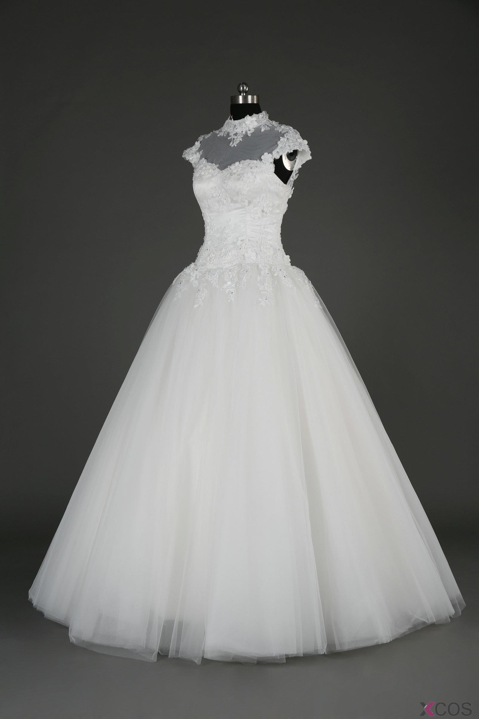 • Simple Dress 2015 New-arrival Wedding Dresses, High-neck White Tulle Wedding Dresses, Long Applique Wedding Dresses TUWD-7057