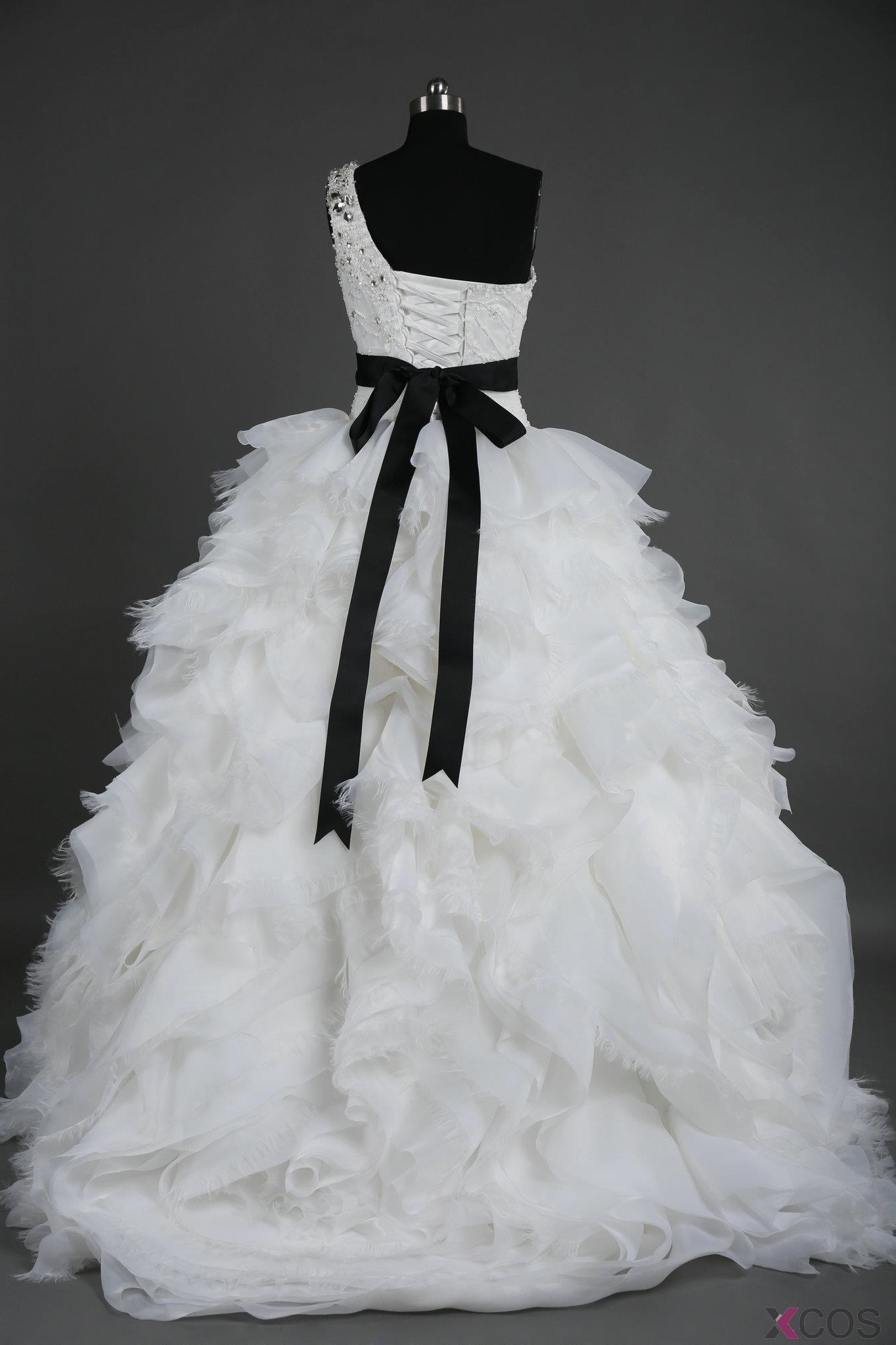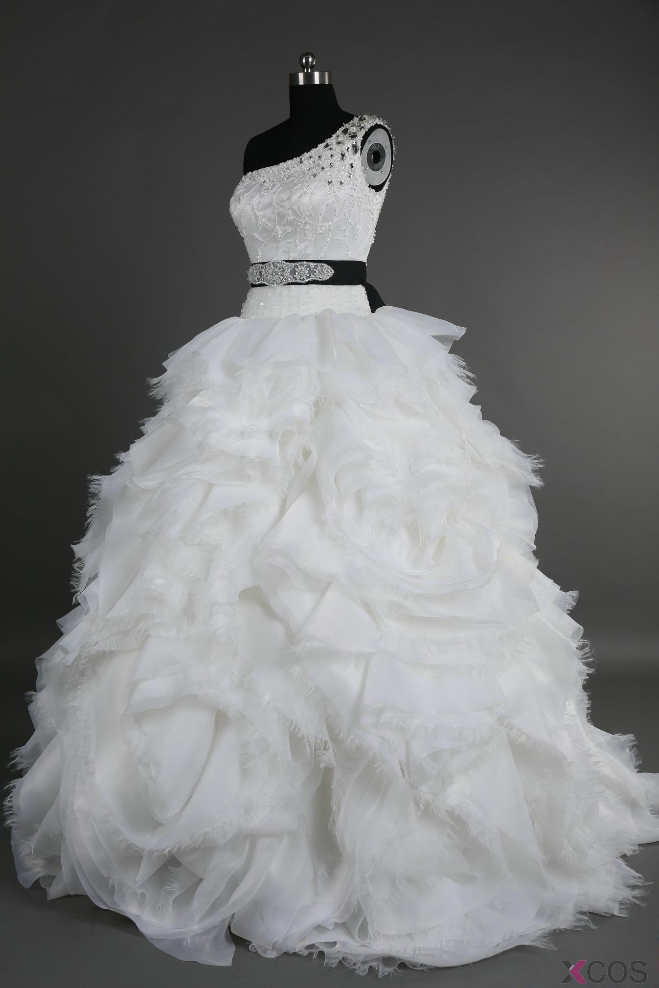 Simple Dress 2015 Wedding Dresses, Handmade One-shoulder Beading Wedding Dresses, Long Organza Wedding DressesORWD-7060