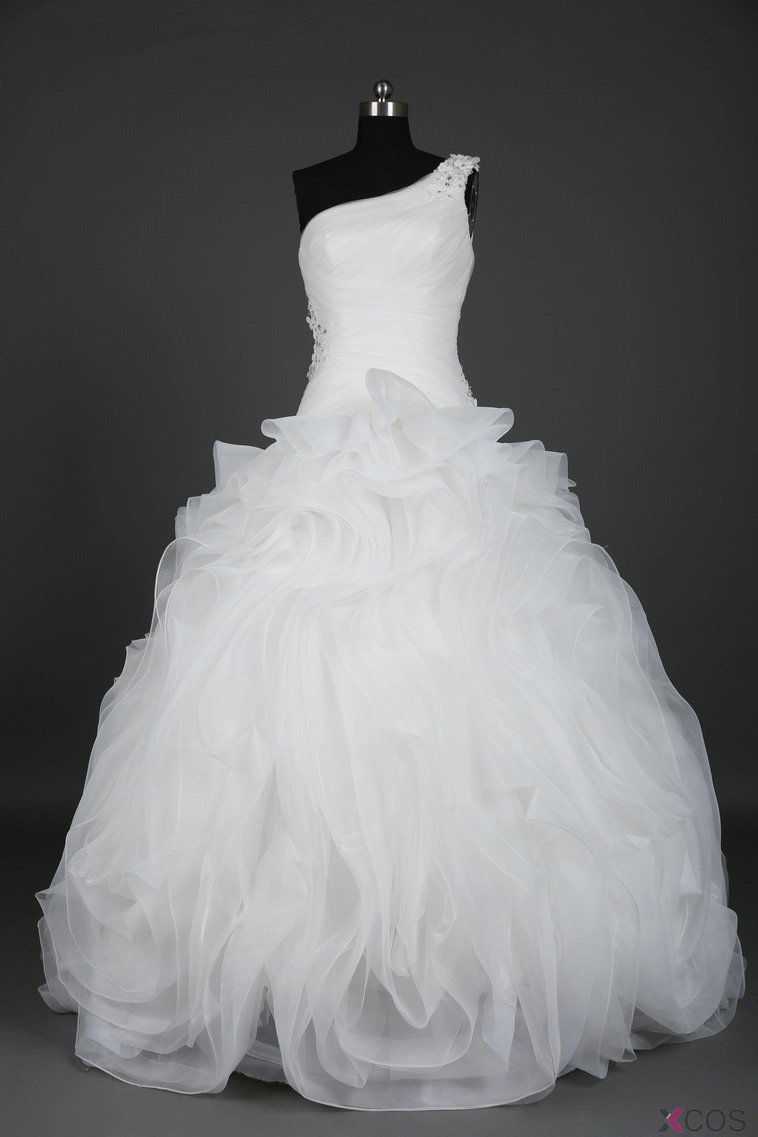 Simple Dress 2015 Wedding Dresses, Handmade One-shoulder Wedding Dresses, Crystal Ruched Organza Wedding DressesORWD-7062