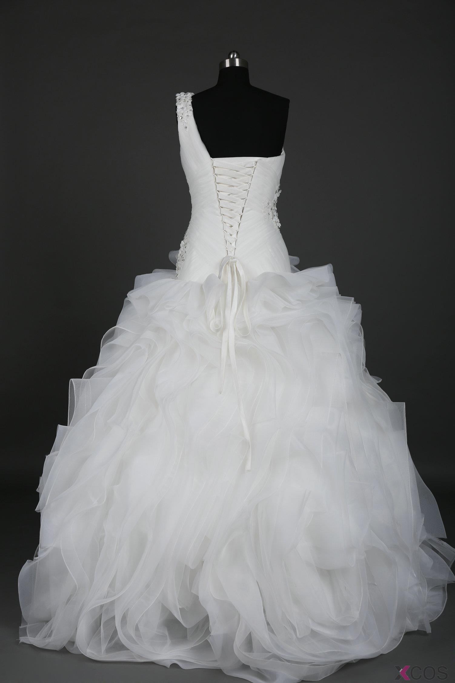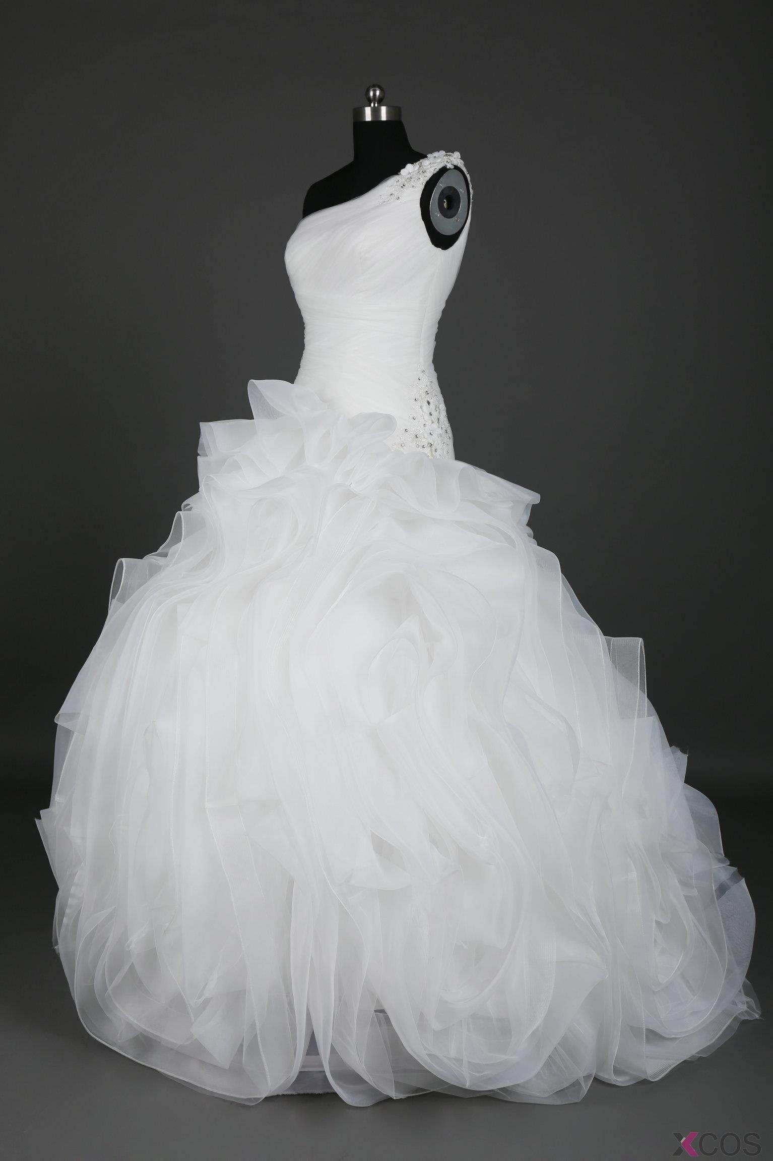 • Simple Dress 2015 Wedding Dresses, Handmade One-shoulder Wedding Dresses, Crystal Ruched Organza Wedding Dresses ORWD-7062
