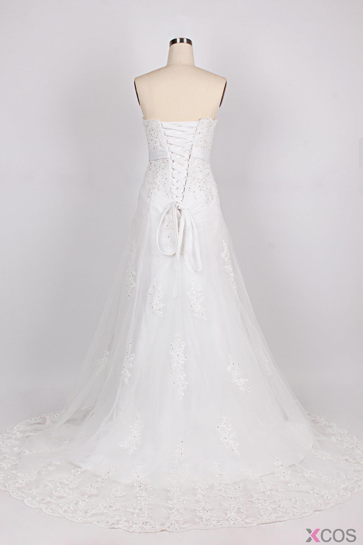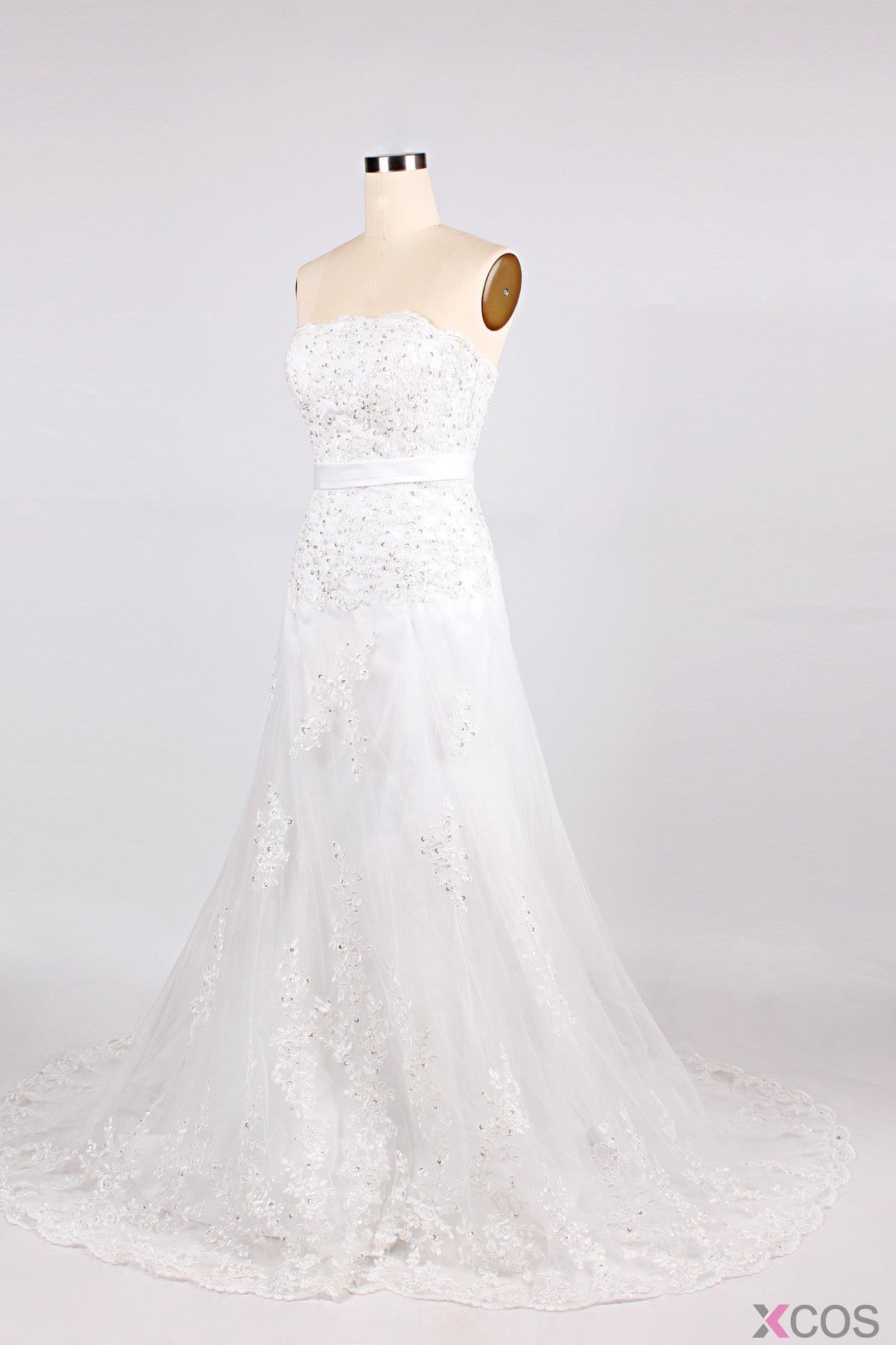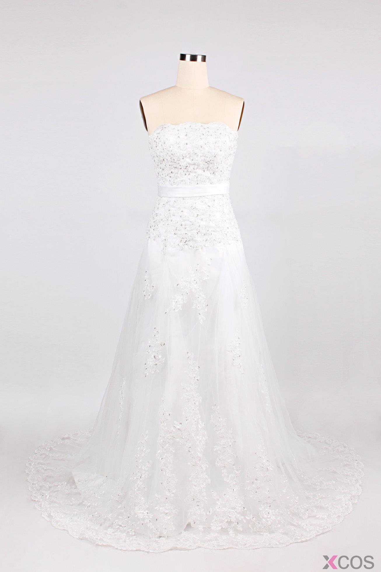 Simple Dress 2015 Wedding Dresses, Strapless Long Beading Lace Wedding Dresses, White Wedding Dresses for 2015 LAWD-7069