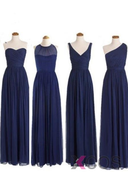 Simple Dress Elegant A-line Floor Length Chiffon Royal Blue Bridesmaid/Prom Dress With Ruched