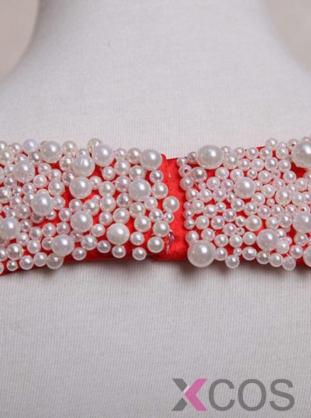 • Simple Dress Elegant White Pearl Capped Long Red Chiffon Prom Dresses/Wedding Reception Dresses/Evening Dresses CHPD-7017