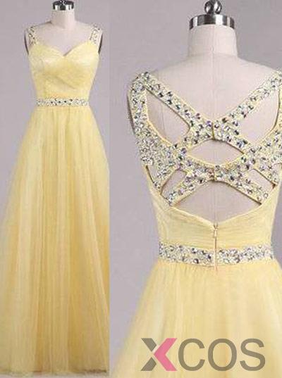 Simple Dress Handmade Beading Sweetheart Long Tulle Prom Dresses/Evening Dresses TUPD-7152