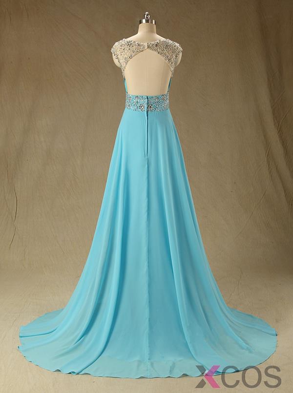 • Simple Dress Luxurious Gems A-line Scoop Backless Long Chiffon Prom Dresses  CHPD-7145