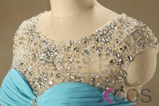 Simple Dress Luxurious Gems A-line Scoop Backless Long Chiffon Prom Dresses CHPD-7145