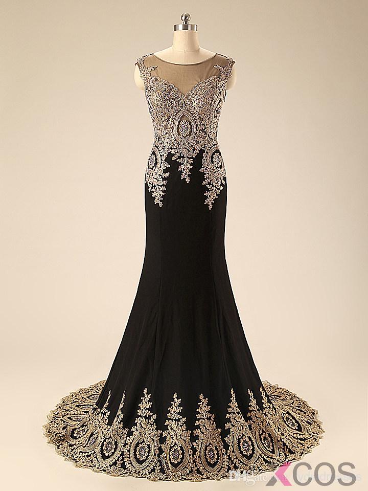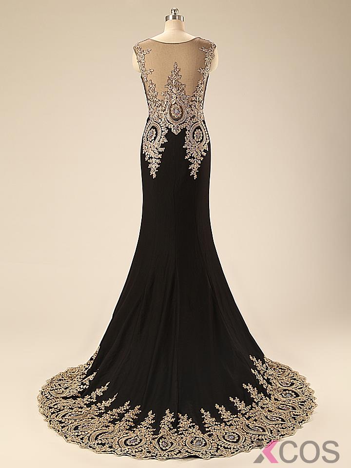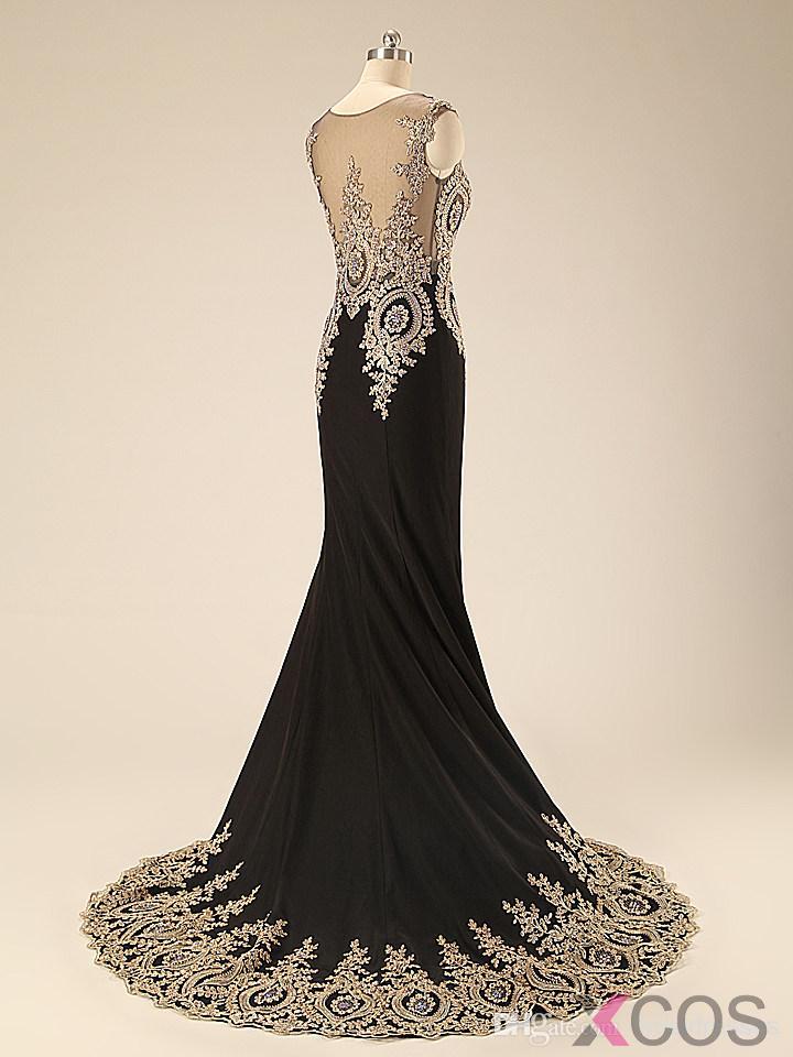 • Simple Dress Luxurious Mermaid Black Long Appliques Chiffon Prom Dresses/Evening Dresses CHPD-7162
