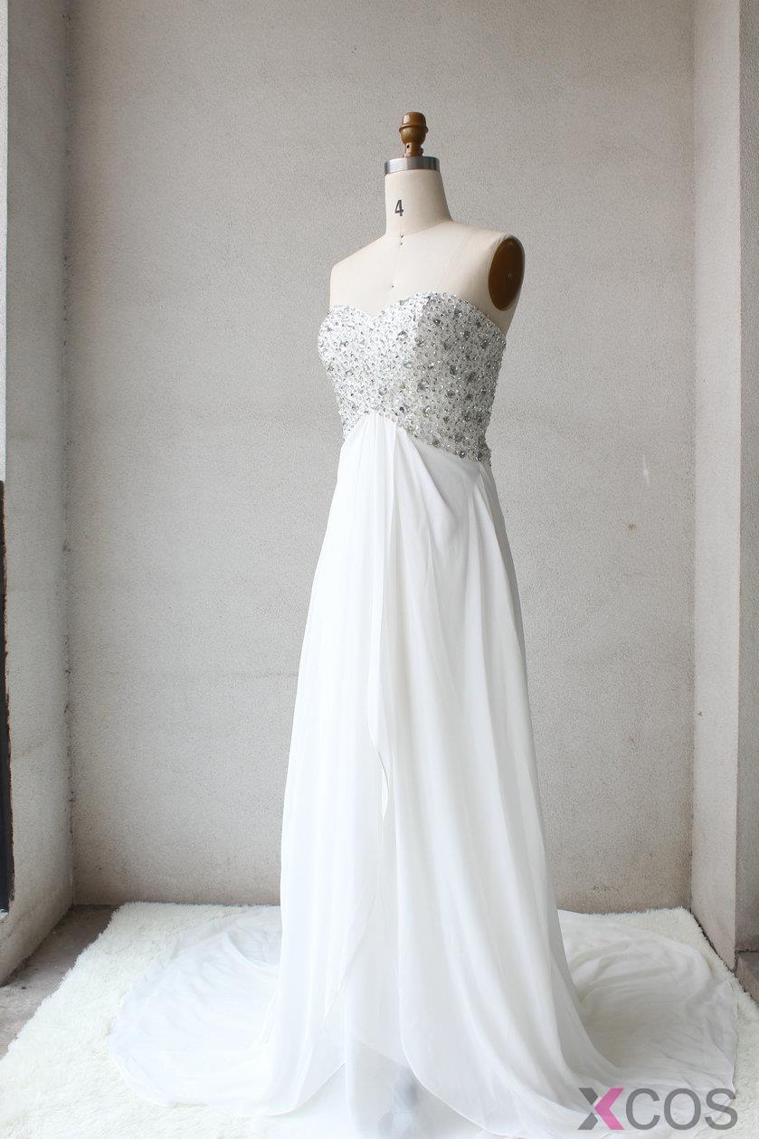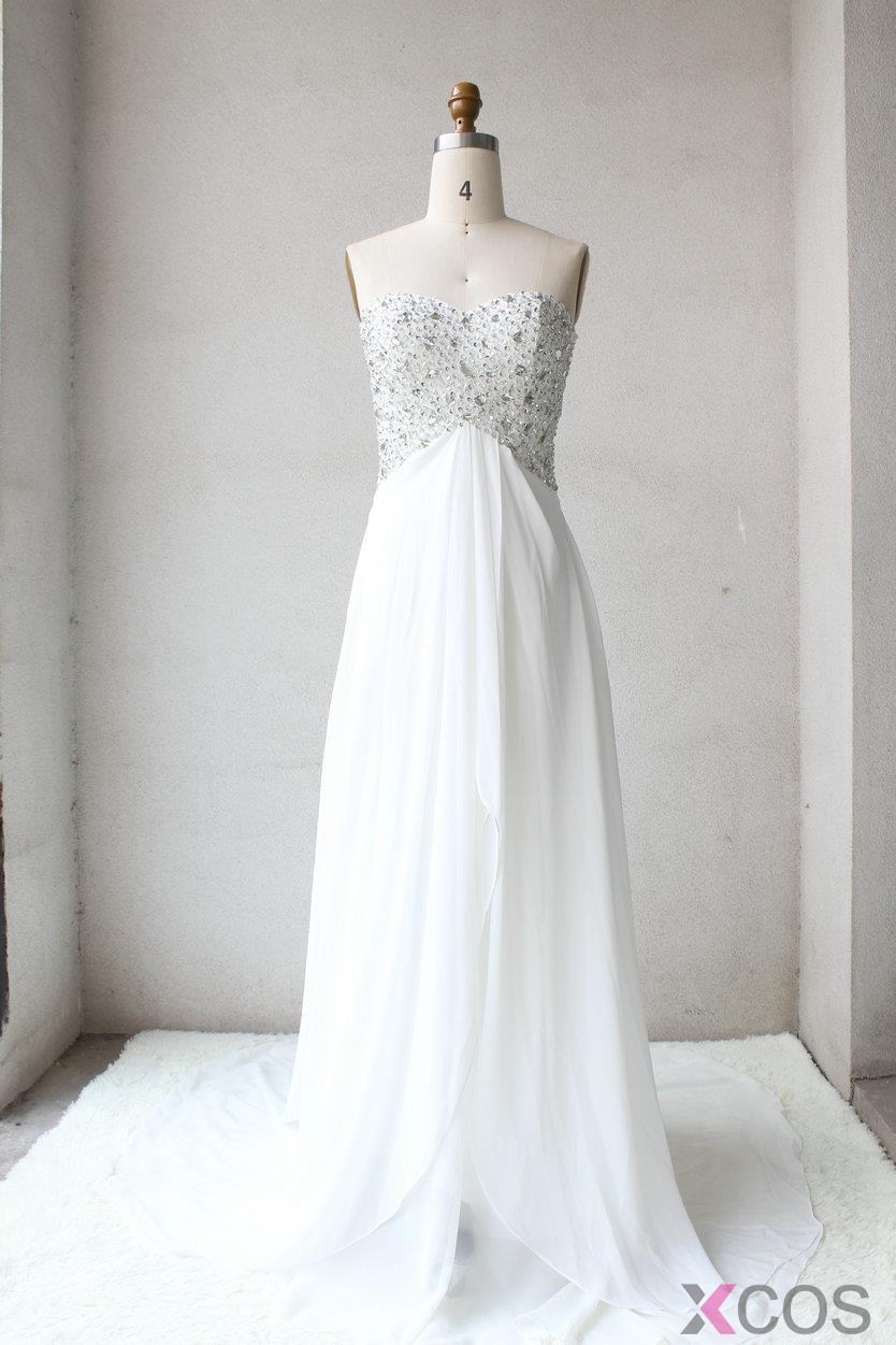 Simple Dress Popular 2015 Wedding Dresses, Sweetheart Crystal Wedding Dresses, Long Chiffon Wedding DressesCHWD-7070