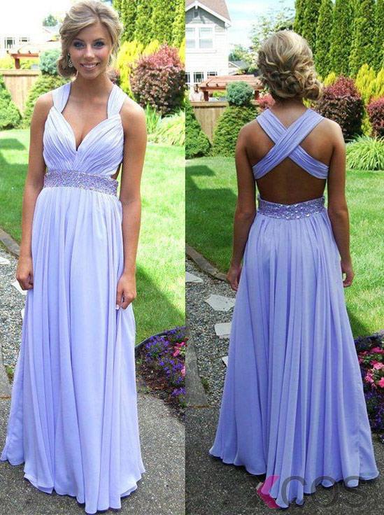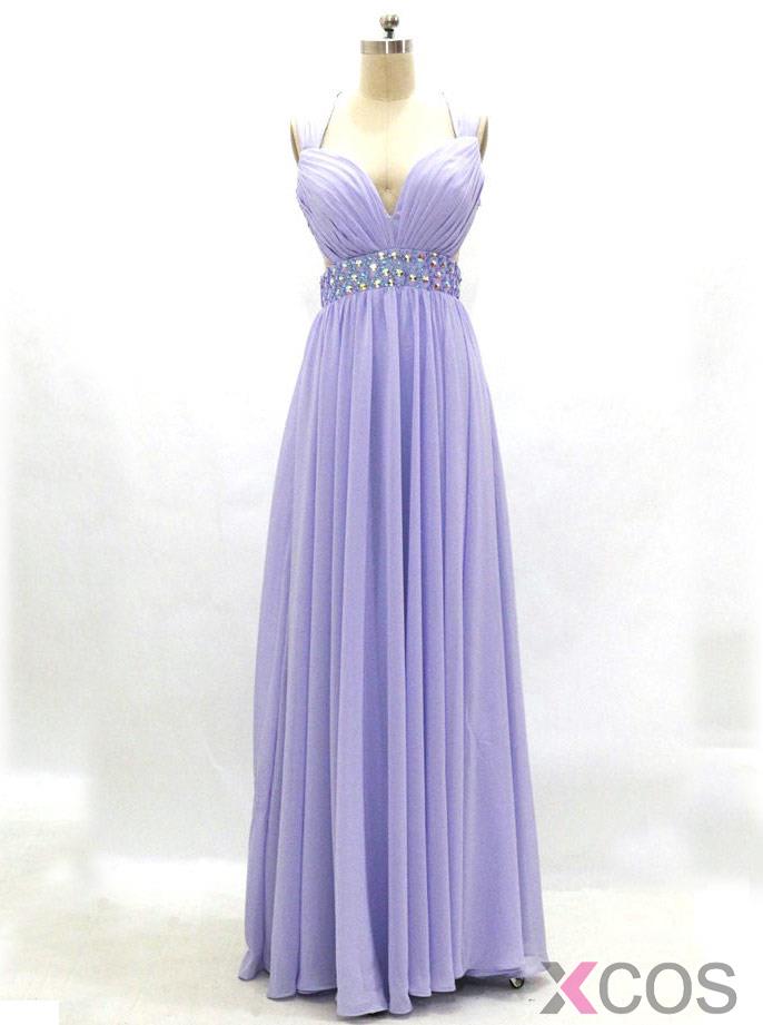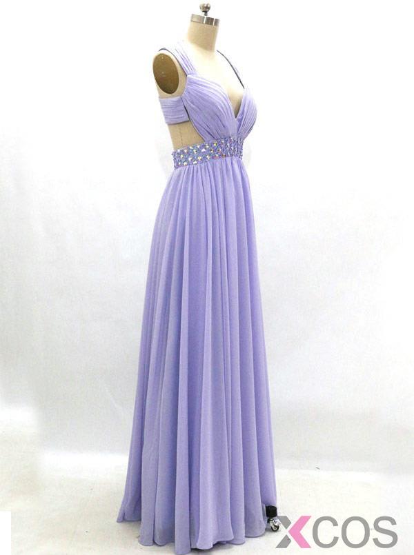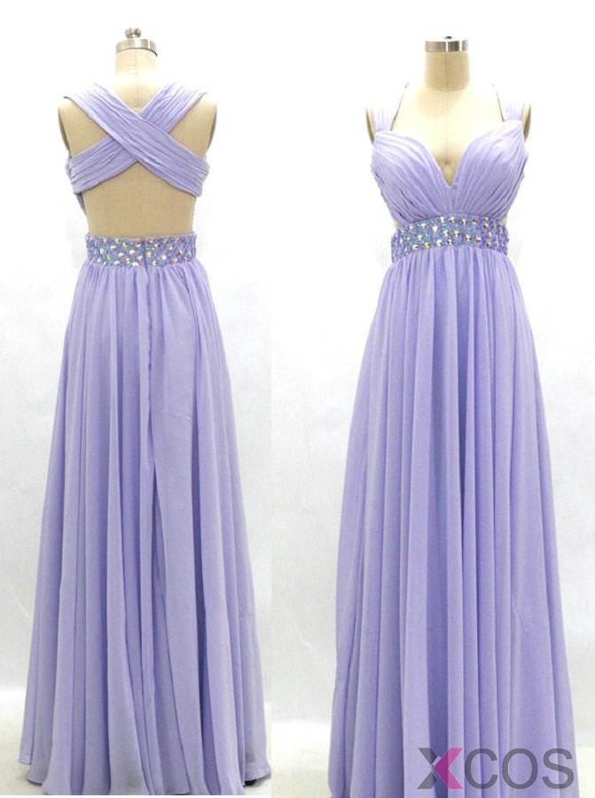 • Simple Dress Popular Cheap A-line Lavender Sweetheart Beading Empire Cross-back Long Chiffon Prom Dresses/Evening Dresses CHPD-7020