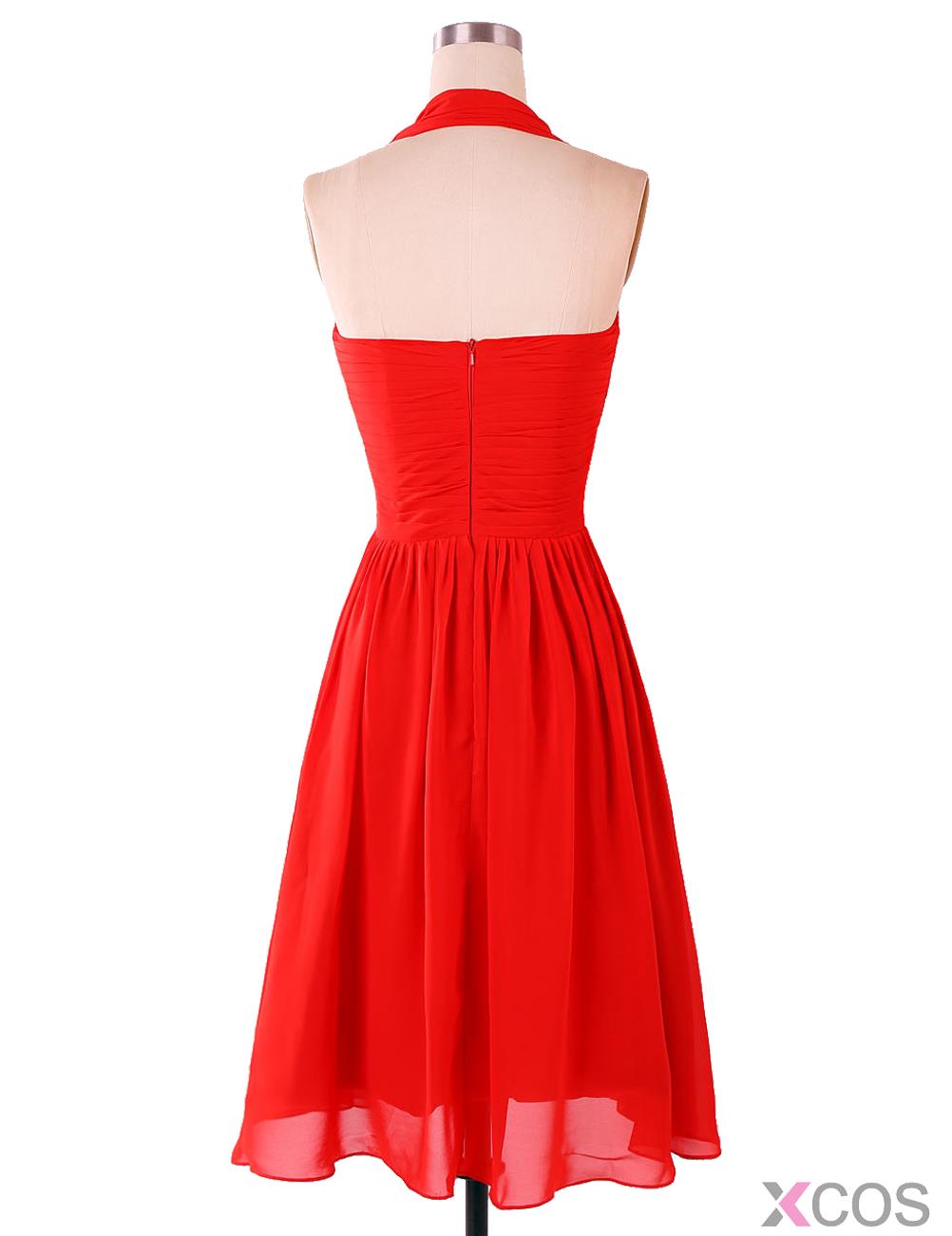 • Simple Halter A-Line Ruffles Red Short Bridesmaid Dress