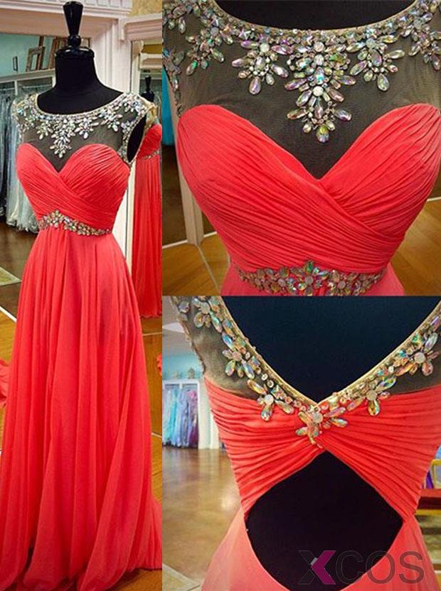 • Simple Prom Dress -A-Line Scoop Sleeveless with Rhinstone