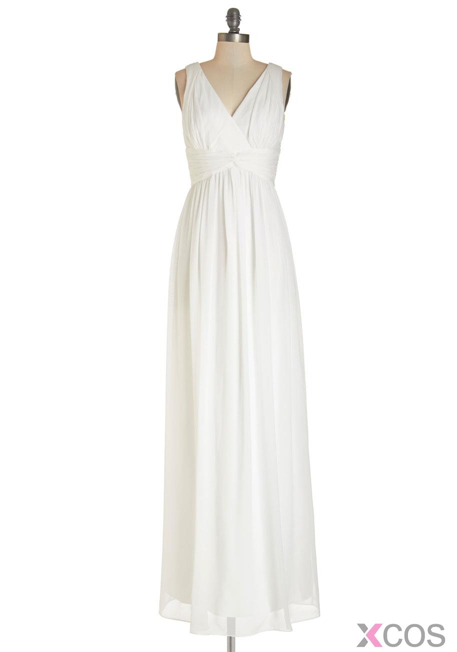 • Simple White V Neck Sleeveless Floor Length Chiffon A Line Bridesmaid Dress CHBD-80064