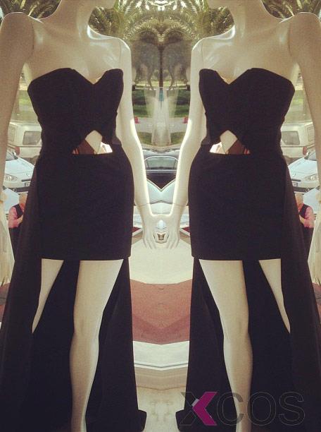 Simple-dress 2015 Elegant A-line Sweetheart High-low Sleeveless Chiffon Black Homecoming Dress/Evening Dress CHHD-8136