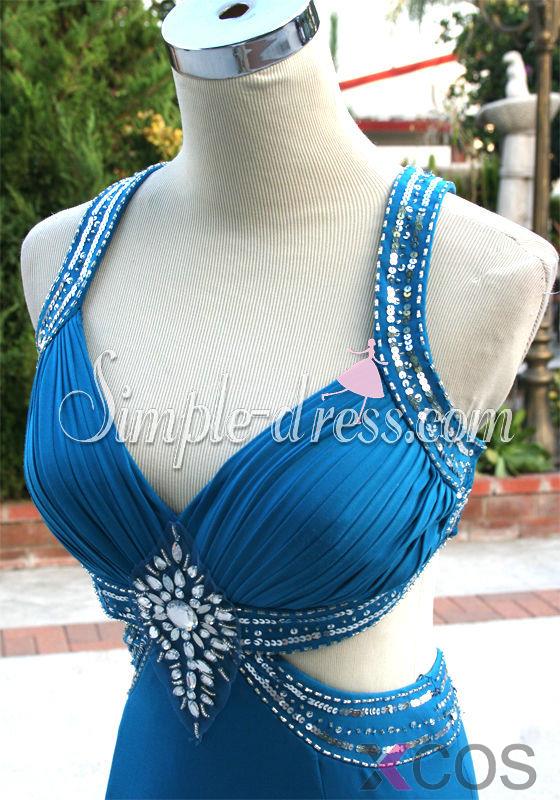 Simple-dress 2015 Elegant Mermaid Sweetheart Ruched Floor-length Chiffon Beading Cross Back Prom Dress/Evening Dress CHPD-8089