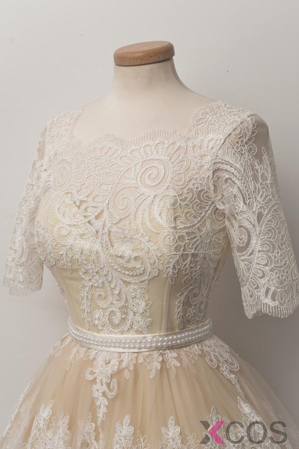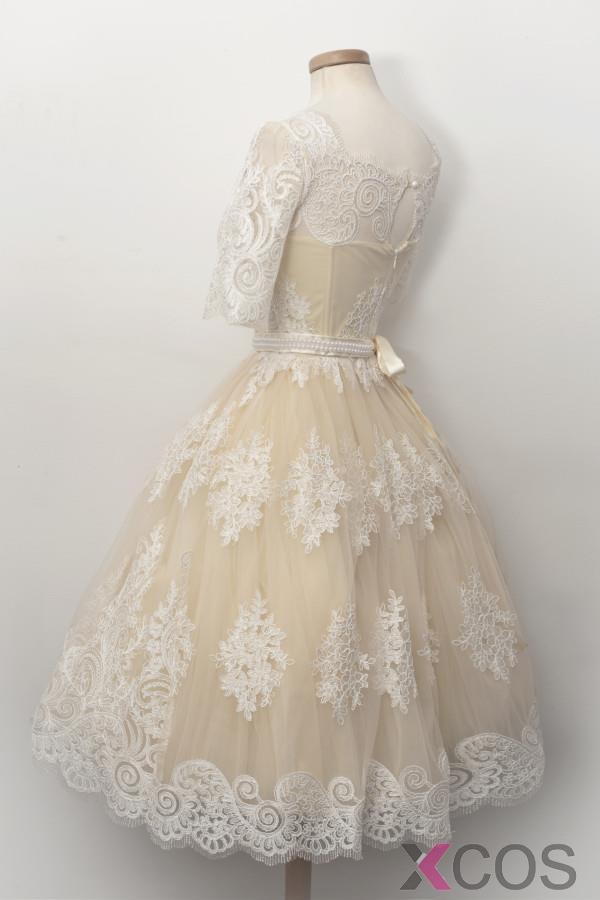 • Simple-dress 2015 Fashion A-line Scoop Half Sleeves Knee-length Lace HomecominG Dress/Party Dress LAHD-8125