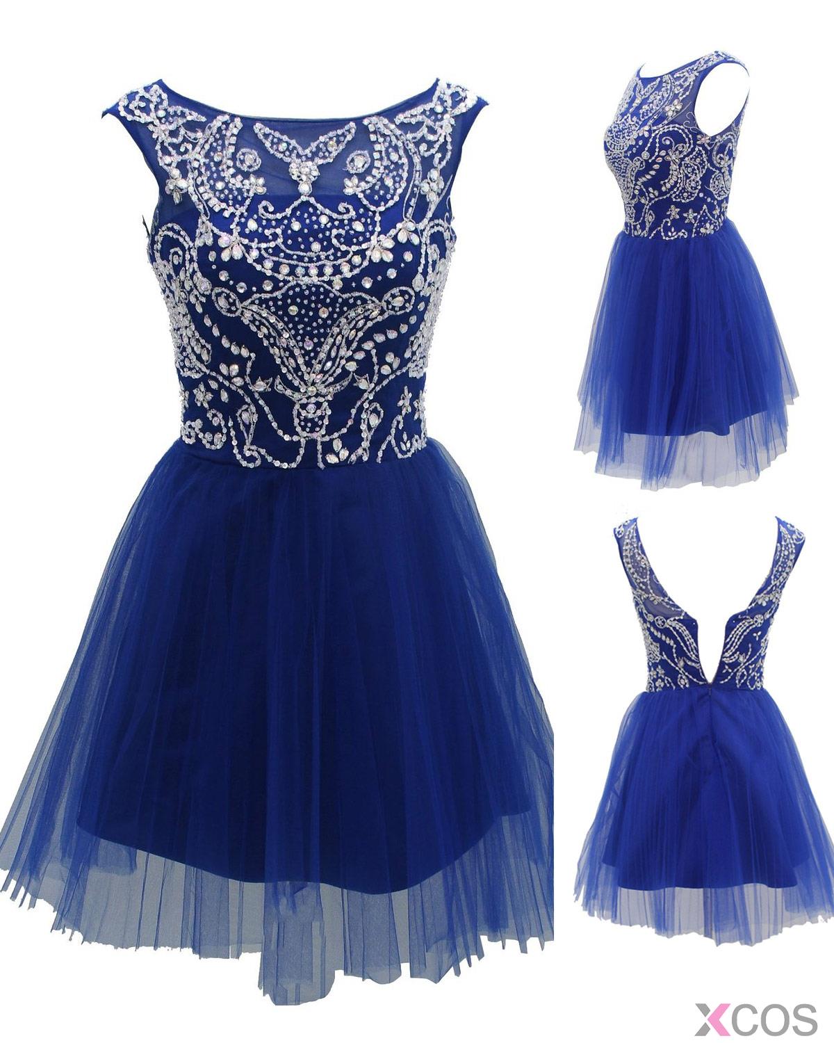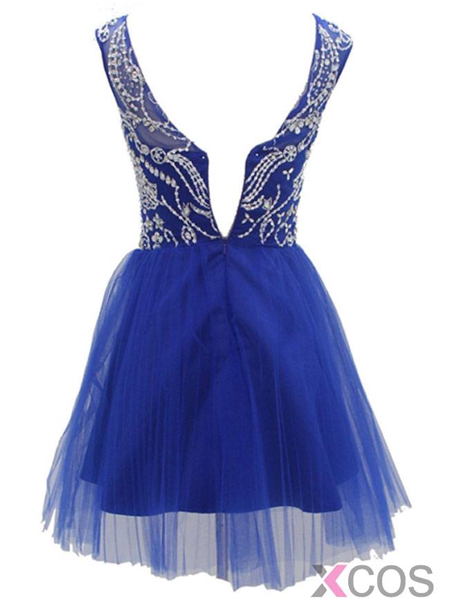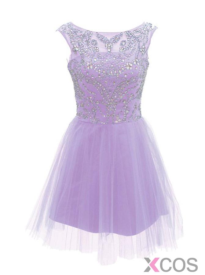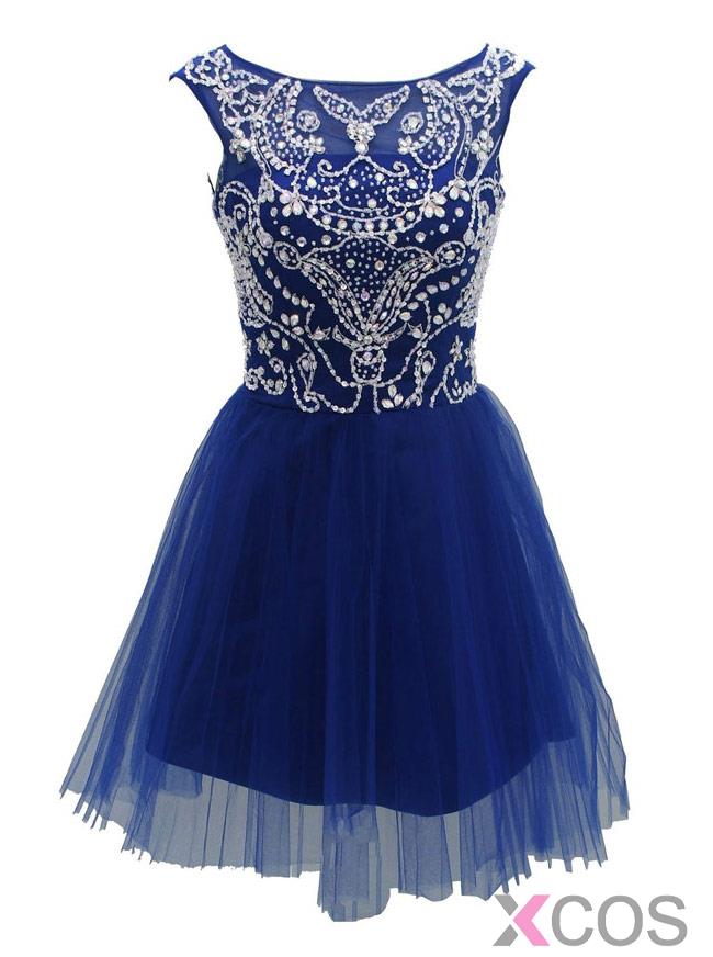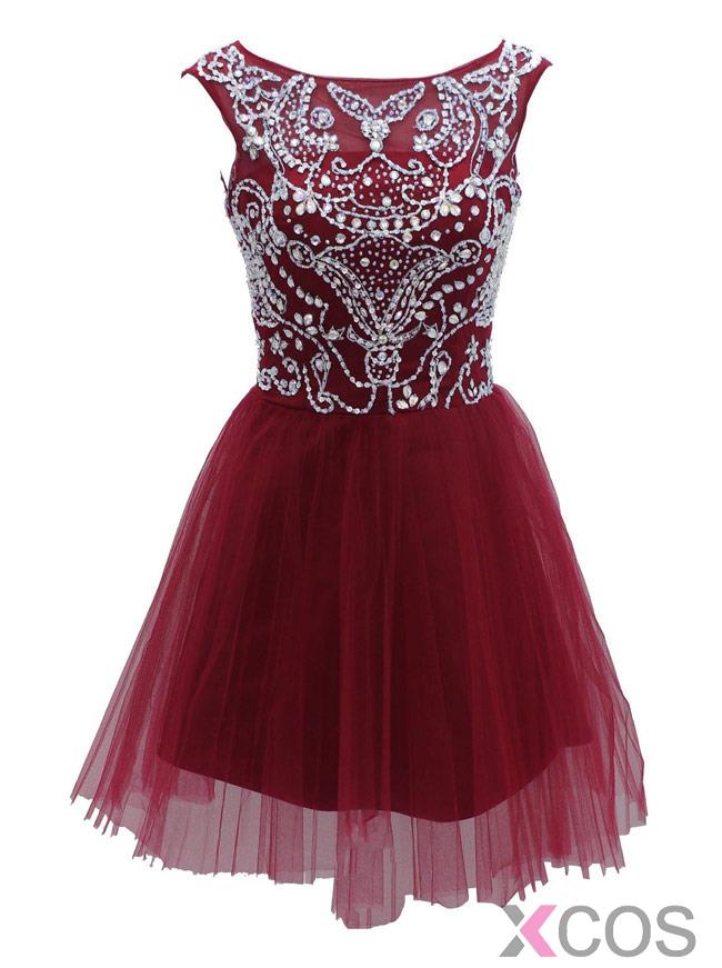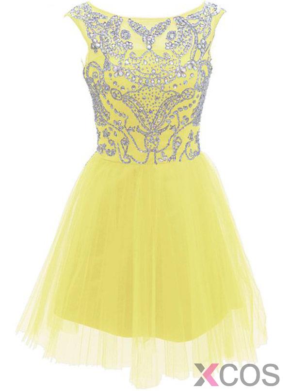 Simple Dress 2015 Fashion A-line Scoop Mini Tulle Beading Homecoming Dress TUHD-80022