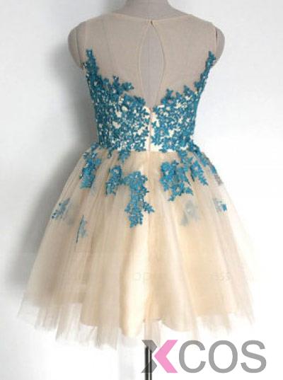 • Simple-dress Elegant A-line Scoop Short Tulle Homecoming Dresses/Party Dresses/Cocktail Dresses TUHD-70819