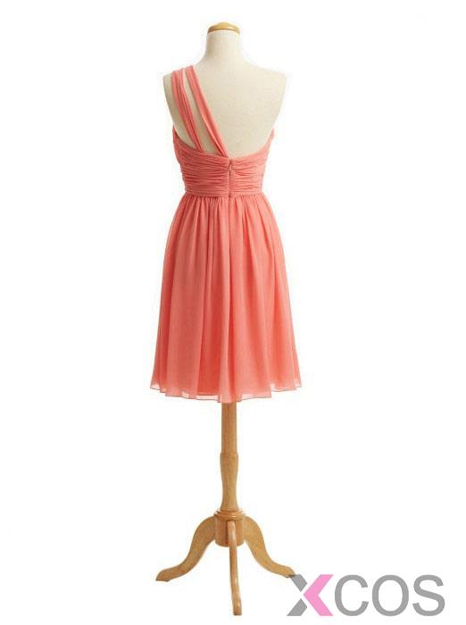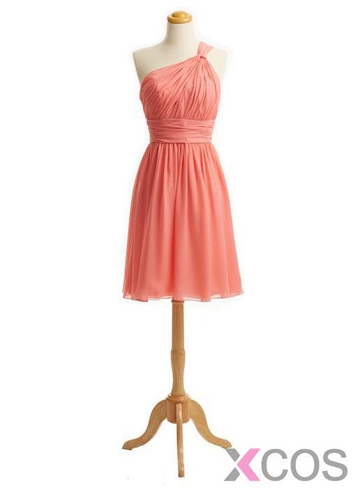 • Simple-dress Elegant One-shoulder Short Coral Chiffon Bridesmaid Dresses/Wedding Party Dresses CHBD-70803