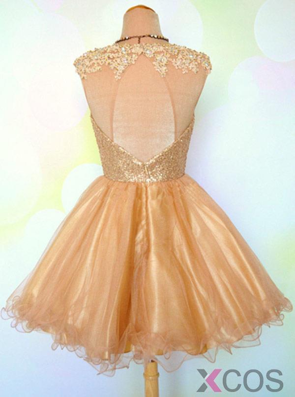 • Simple-dress Elegant Scoop Sequin Gold Short A-line Homecoming Dresses/Party Dresses TUHD-70784