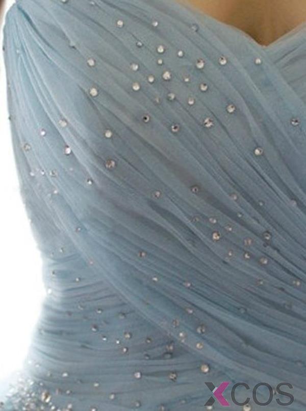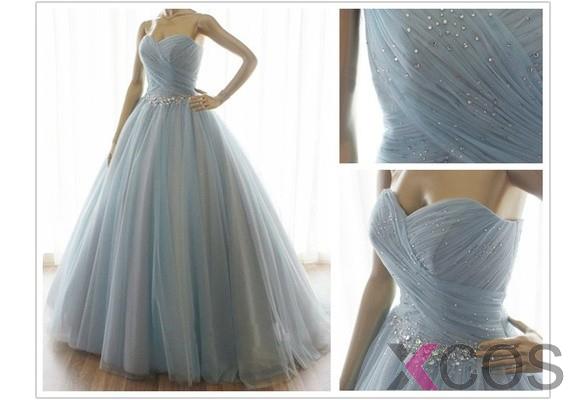 Simple-dress Handmade Strapless A-line Long Tulle Prom Dresses/Quinceanera Dresses TUPD-7643