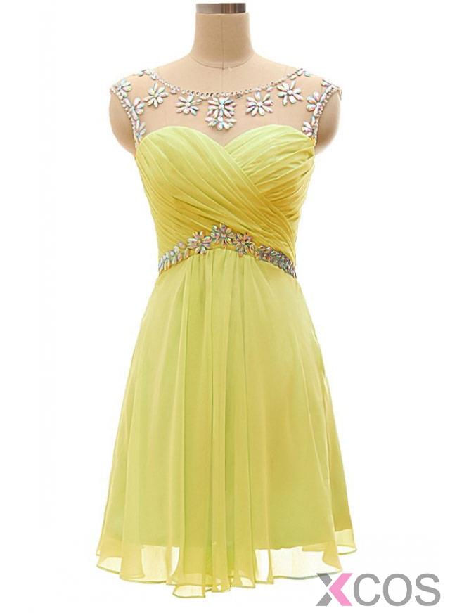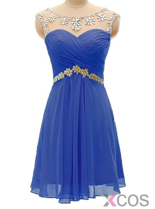 Simple-dress Hot-selling A-line Beaded Scoop Short Mint 2015 Chiffon Homecoming Dresses/Party Dresses CHHD-70751