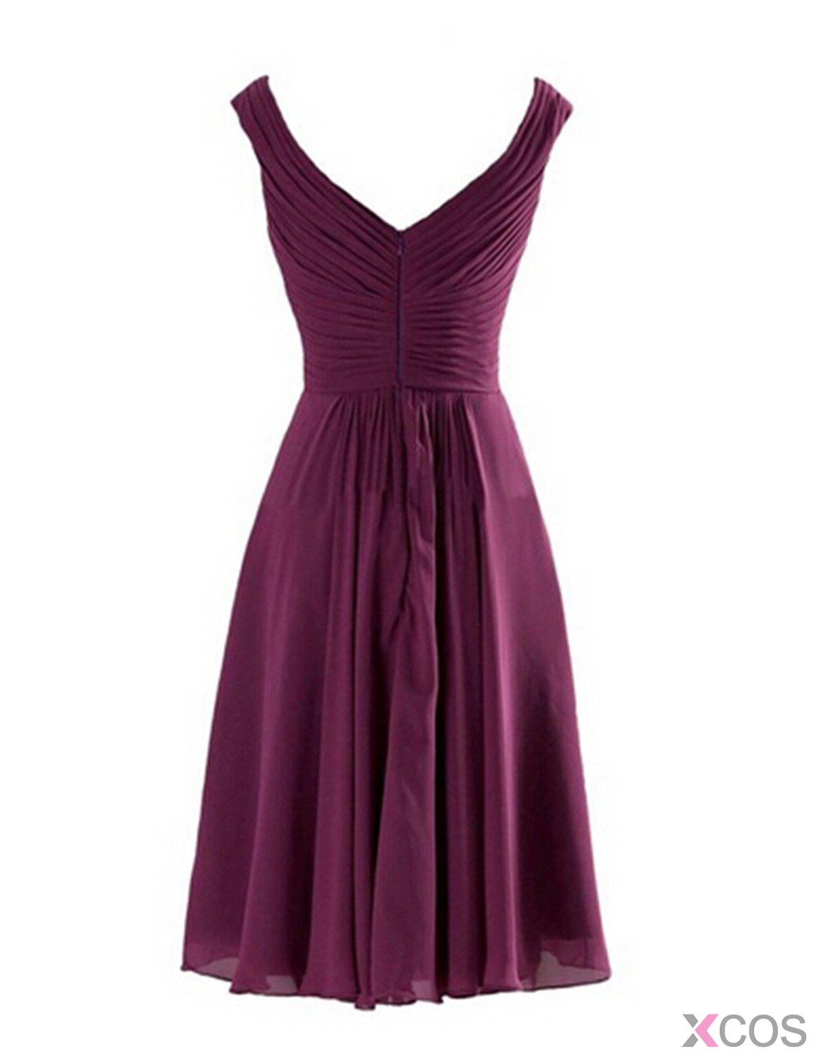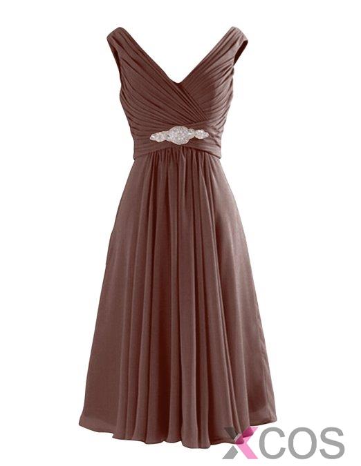 • Simple-dress V Neck A-Line Knee Length Chiffon Bridesmaid Dresses CHBD-81314
