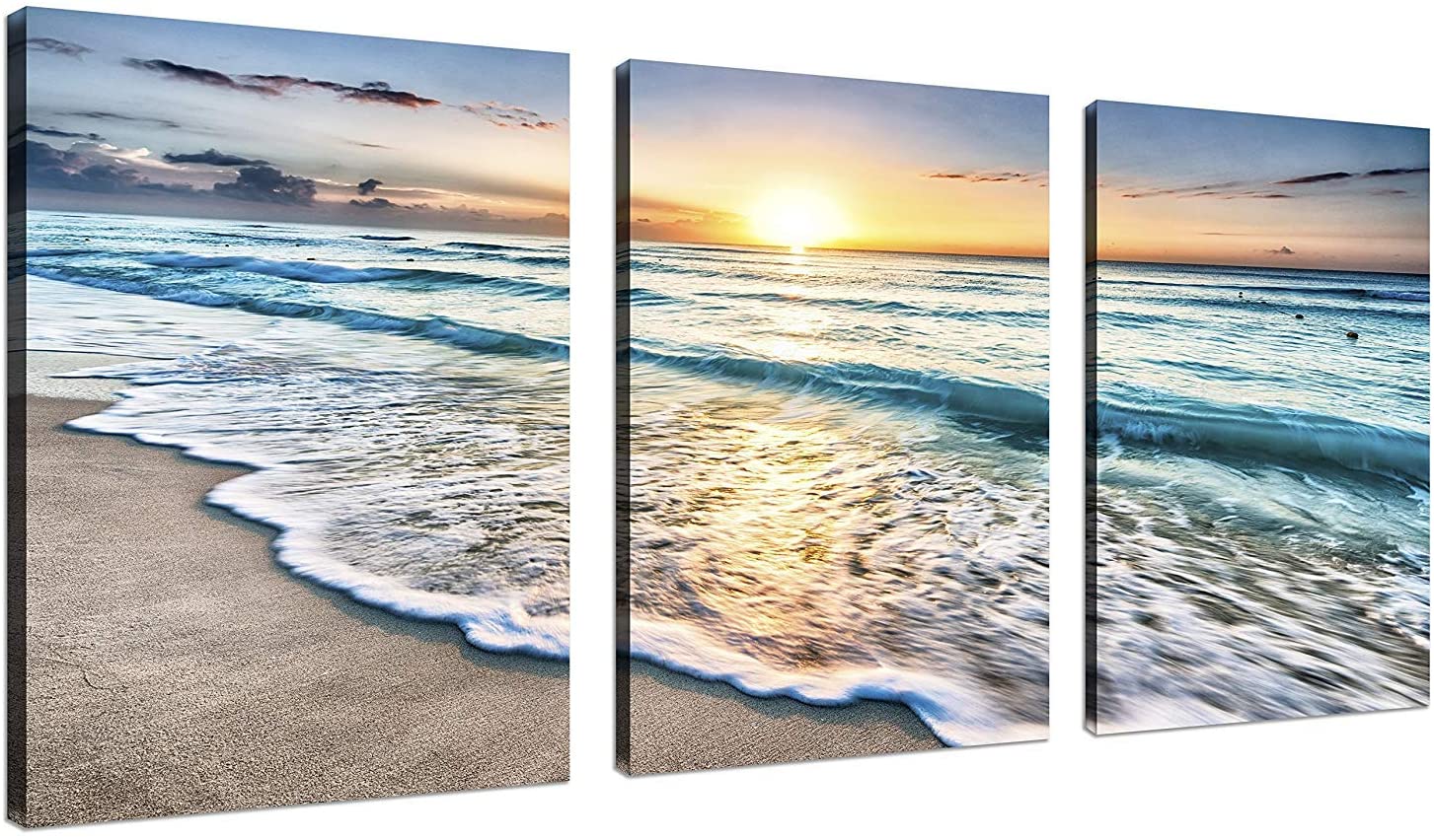 Sunsfun 3 Panel Beach Canvas Wall Art for Home Decor Blue Sea Sunset White Beach Painting The Picture Print On Canvas Seascape The Pictures for Home Decor Decoration,Ready to Hang