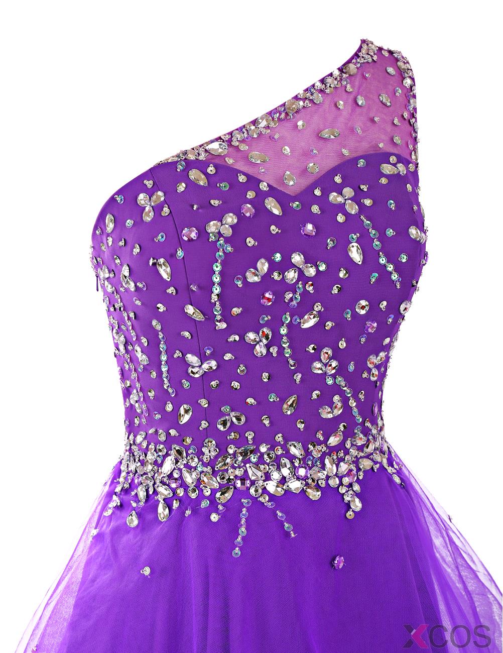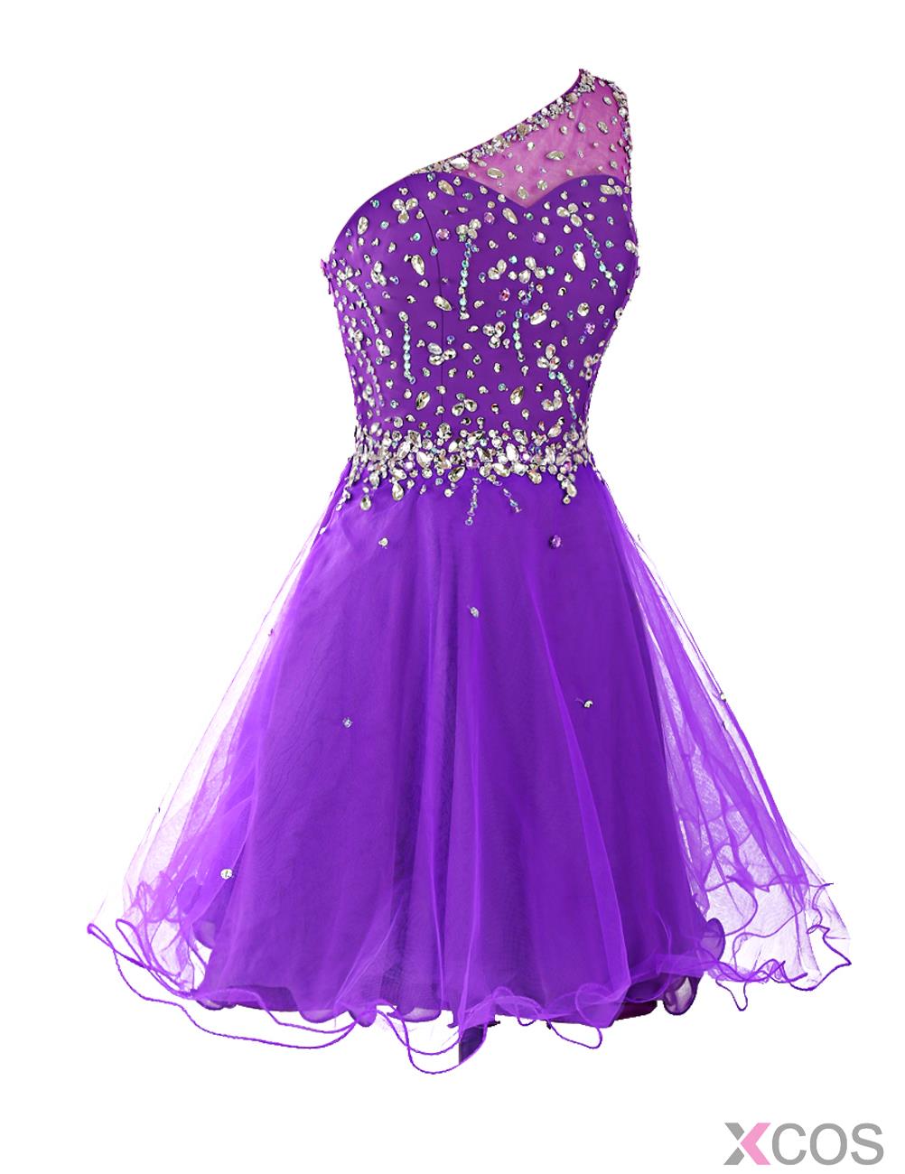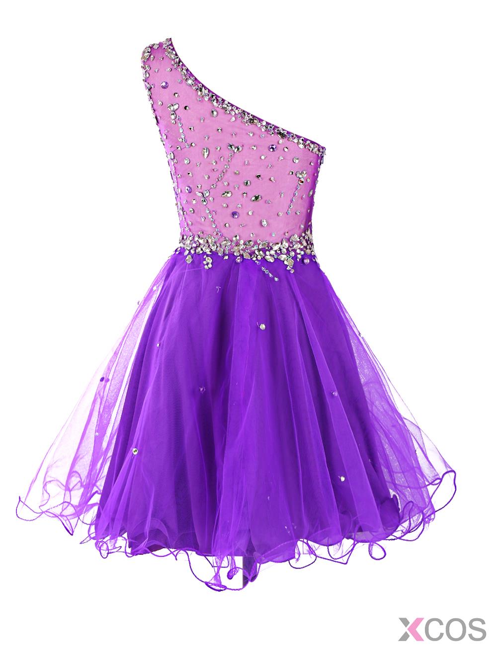 • Timeless One-shoudlder Beading Purple Short Cocktail Dress Prom Gown