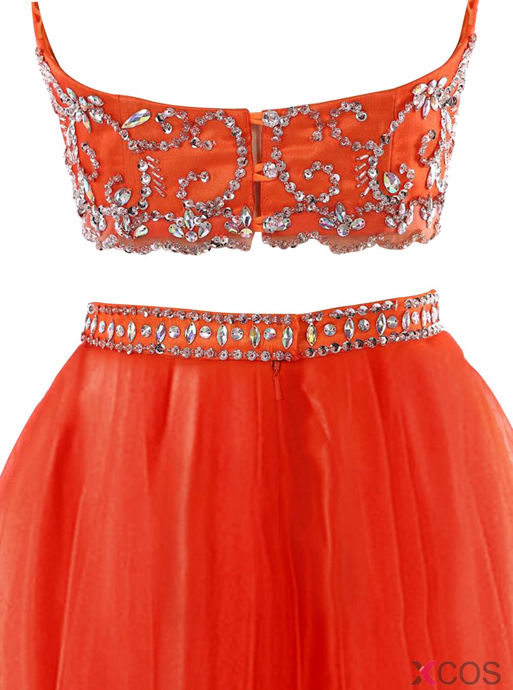 • Two Piece Prom Dress - A-line Orange Sequins Tulle