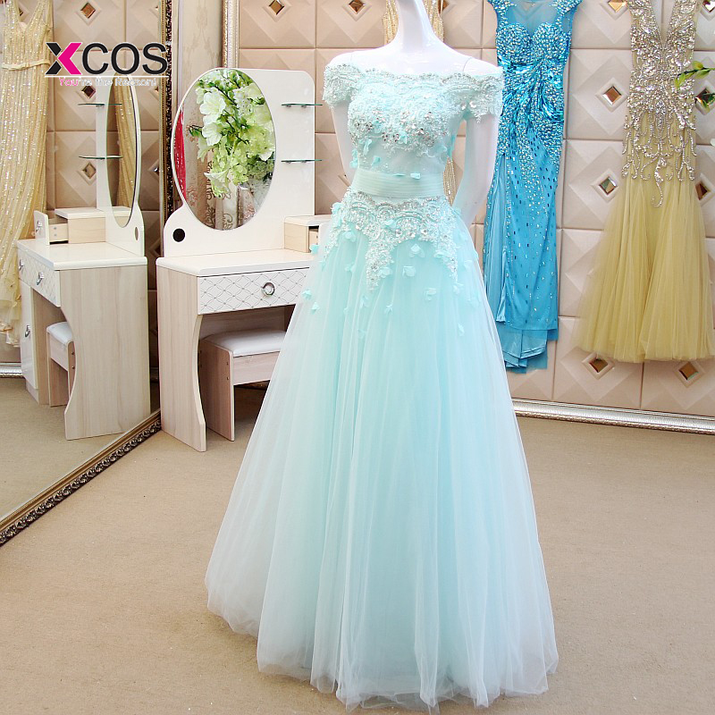 Vestido de Festa Longo Lace Boat Neck Prom Dresses Long Tulle Appliques Flowers Beads Sleeveless A line Party Gown Evening Dress