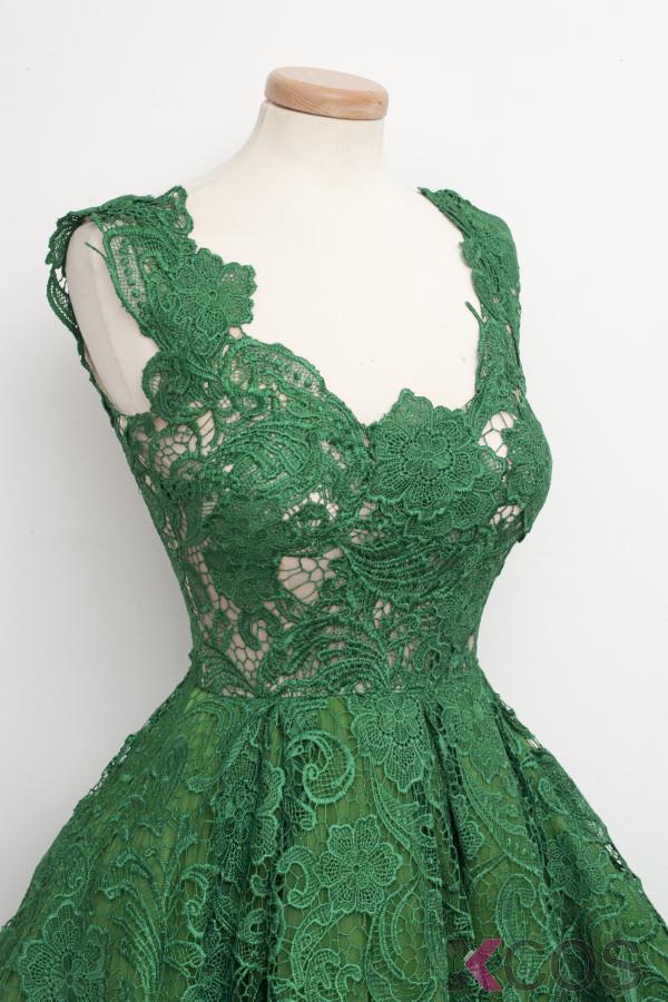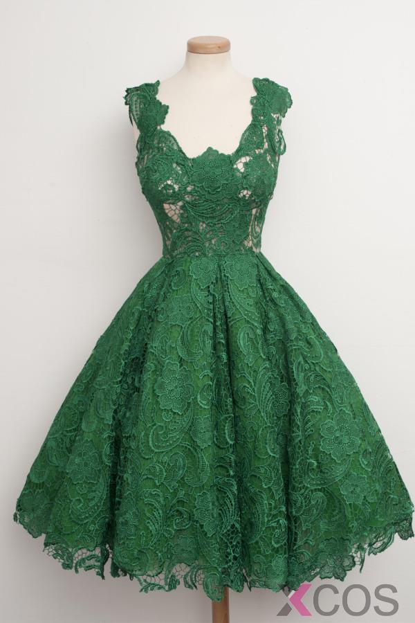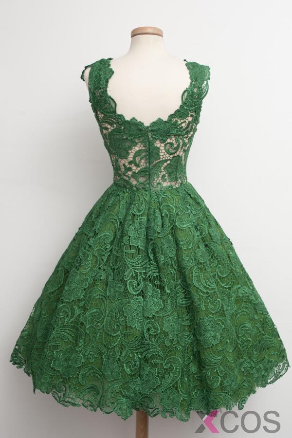 Vintage 2015 Scoop Red Lace Knee-Length Homecoming Dresses Prom Gowns LAHD-70967