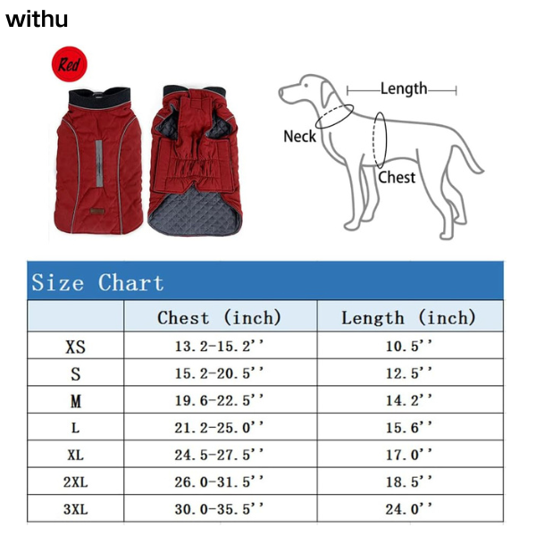 • Withu Cold Winter Dog Coat Warm Outfit Clothes