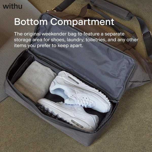 Style Meets Smart: Withu overnight bag features a multitude of organizations with its spacious design, quick access slip pockets, secure zipper openings, bottom shoe compartment, and a handy suitcase sleeve at the back.