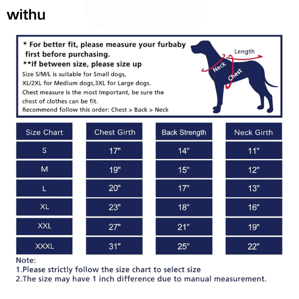 • Withu Dog Coat Windproof Winter Jacket with Harness