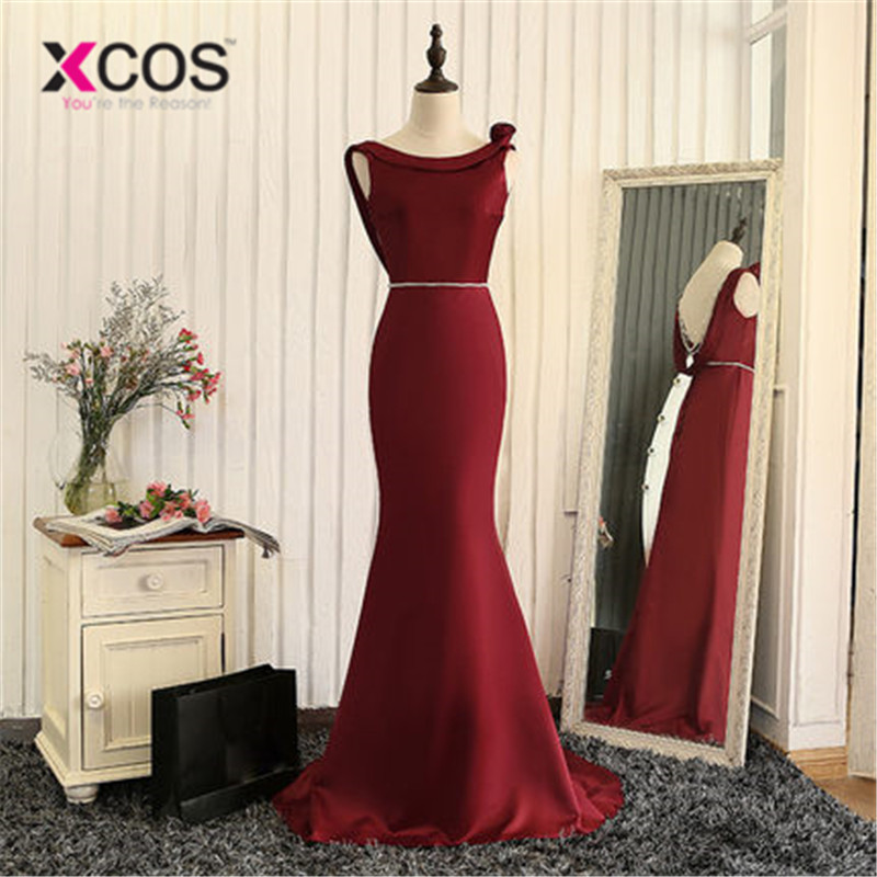 XCOS Elegant Beads Mermaid Long Evening Dress 2018 Simple Wine Red Party Dresses Robe De Soiree Longue