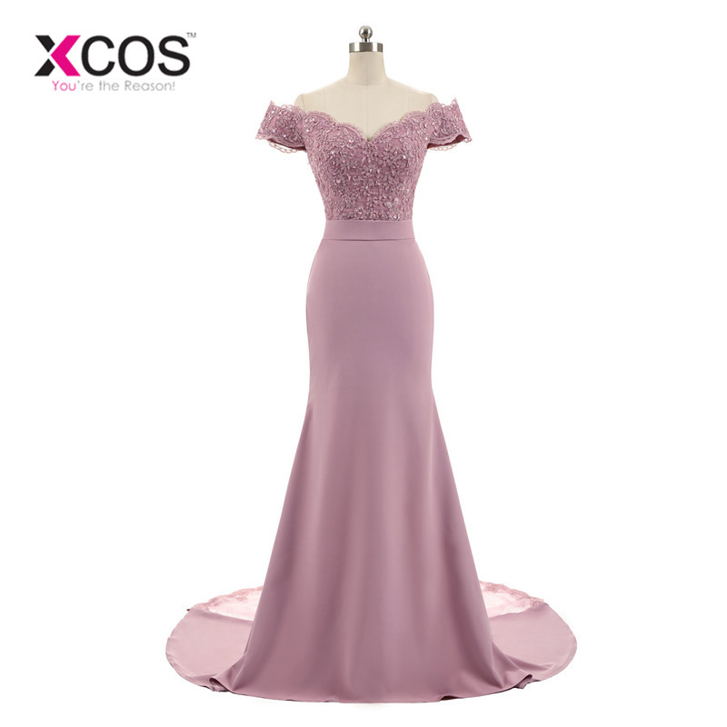 XCOS Pink Evening Dress Abendkleider 2018 Sweetheart Mermaid Prom Dress Satin With Appliques Evening Dresses Long Robe De Soiree