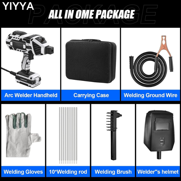 COMPLETE WELDING KIT: YIYYA's 110V welding machine comes with a comprehensive set of accessories and tools to meet all your welding needs. The welding kit includes 1 x 110V handheld arc machine, 10 x welding rods, 1 x cowhide protective gloves, 1 x folded welding cap, 1 x welding brush, and 1 x storage toolbox. With this complete kit, you have everything necessary for a smooth and efficient welding operation