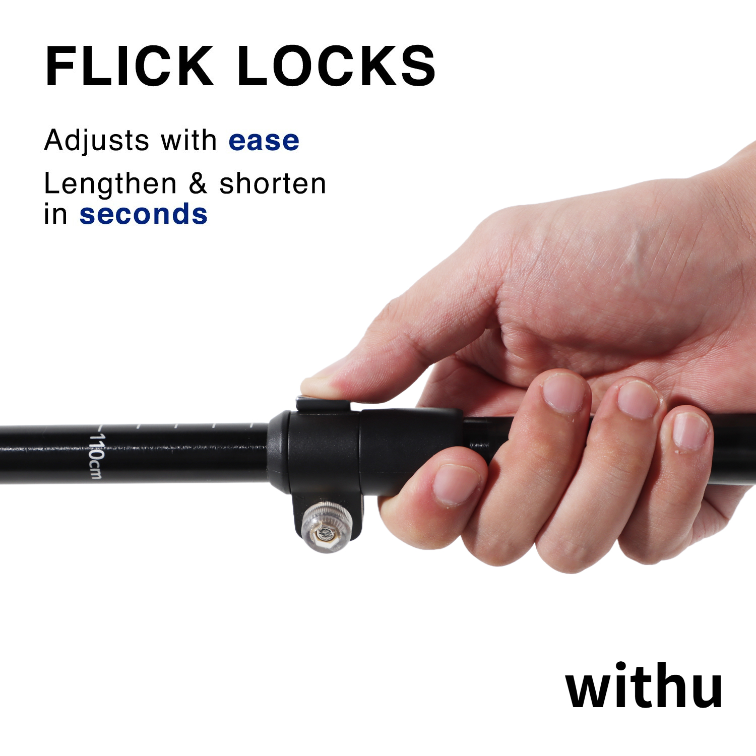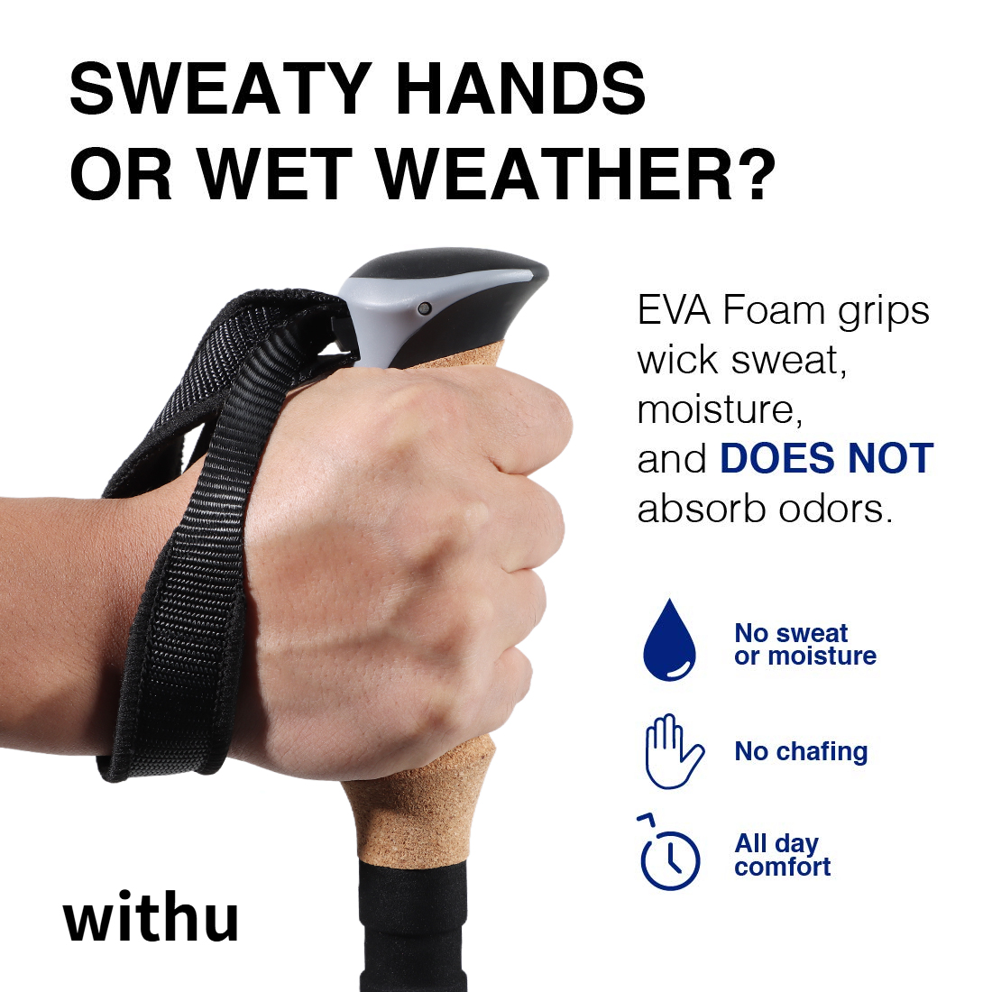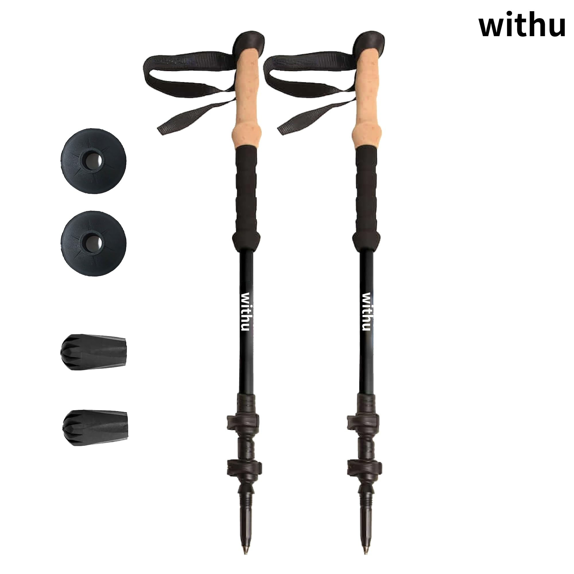 Brand: withu Material: Aluminum Color: Black Shaft Material: Aluminum Extended Length: 51 Inches Item Weight: 580 Grams Folded Size: 15.3 inches Included Components: 1 carry bag, 2 trekking pole Enhanced Support and Comfort: withu ergonomic and collapsible trekking poles provide superior support with cork grips that wick away sweat, ensuring comfort during long hikes and rugged terrain adventures. Durable and Reliable: Constructed from aircraft-grade aluminum with reinforced metal caps, these hiking poles are built to withstand tough terrains and heavy loads, offering exceptional durability over carbon fiber. Compact and Portable: The innovative collapsible design of these hiking sticks folds down to just 15.3 inches (39 cm), effortlessly fitting into backpacks, luggage, or duffel bags. Perfect for outdoor enthusiasts, they ensure easy travel and storage without compromising on performance. Adjustable and Customizable: Featuring advanced metal flip lock technology, these collapsible walking poles quickly adjust from 43.3 inches (110 cm) to 51.2 inches (130 cm), accommodating users from 5'2'' (159 cm) to 6'5' (195 cm) for ultimate convenience. Lightweight Construction: Each hiking pole weighs only 10.2 oz (290 g), making them ideal for all-day use, whether hiking, backpacking, skiing, or crossing streams, thanks to the use of high-grade lightweight materials. Ready for Any Adventure: Engineered for extreme conditions, these collapsible walking sticks are versatile for fishing, hiking, and skiing, providing the strength and reliability needed for all your outdoor activities.